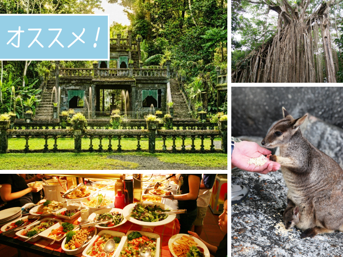 人気の両ツアーからワラビーの餌付け、絞め殺しのイチジク(ケアンズでは一番古く、クイーンズランド遺産に選ばれています。)、パロネラパークなどのハイライトをピックアップ!