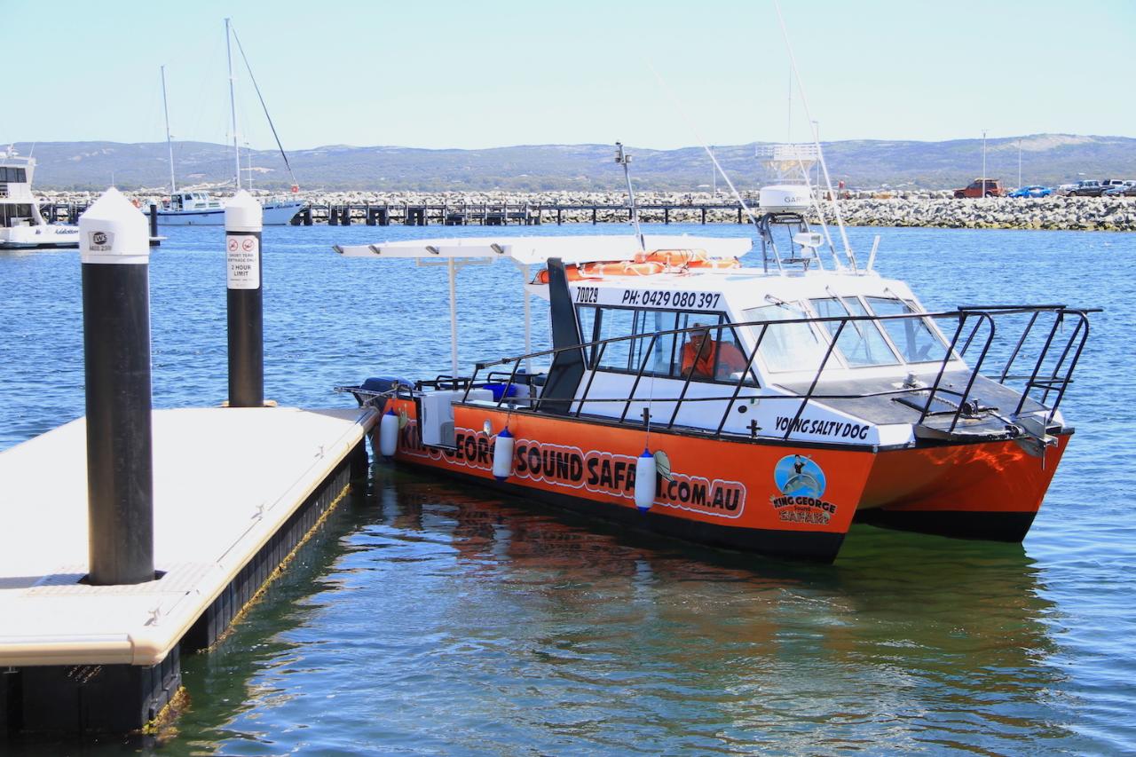 Our boat is the “Young Salty Dog”, a twin hull catamaran and an ex Sea Rescue vessel that is safe and stable. Holding up to 12 passengers, Captain Mark will give you a personalised tour of the harbour and King George Sound.