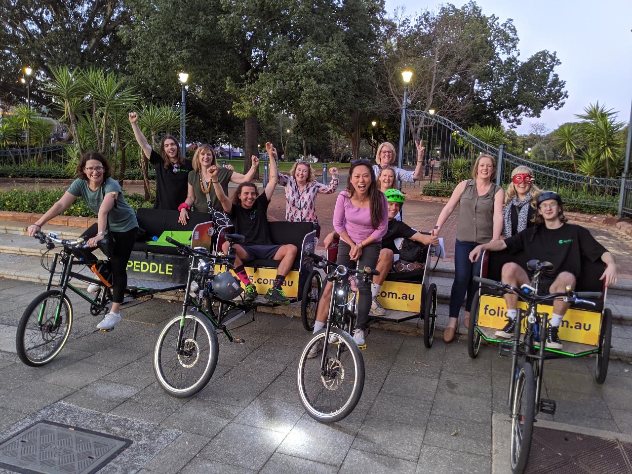 Our 'date night tour' with Peddle Perth was fantastic. I wanted something different for my wife for Mother's Day and it came up trumps. Reid our "peddler" and tour guide was fantastic. We've lived in Perth for 28 years and yet we still got to see new things and enjoyed cocktail bars we would never have found. Will be booking a group tour for the Christmas Lights tour.