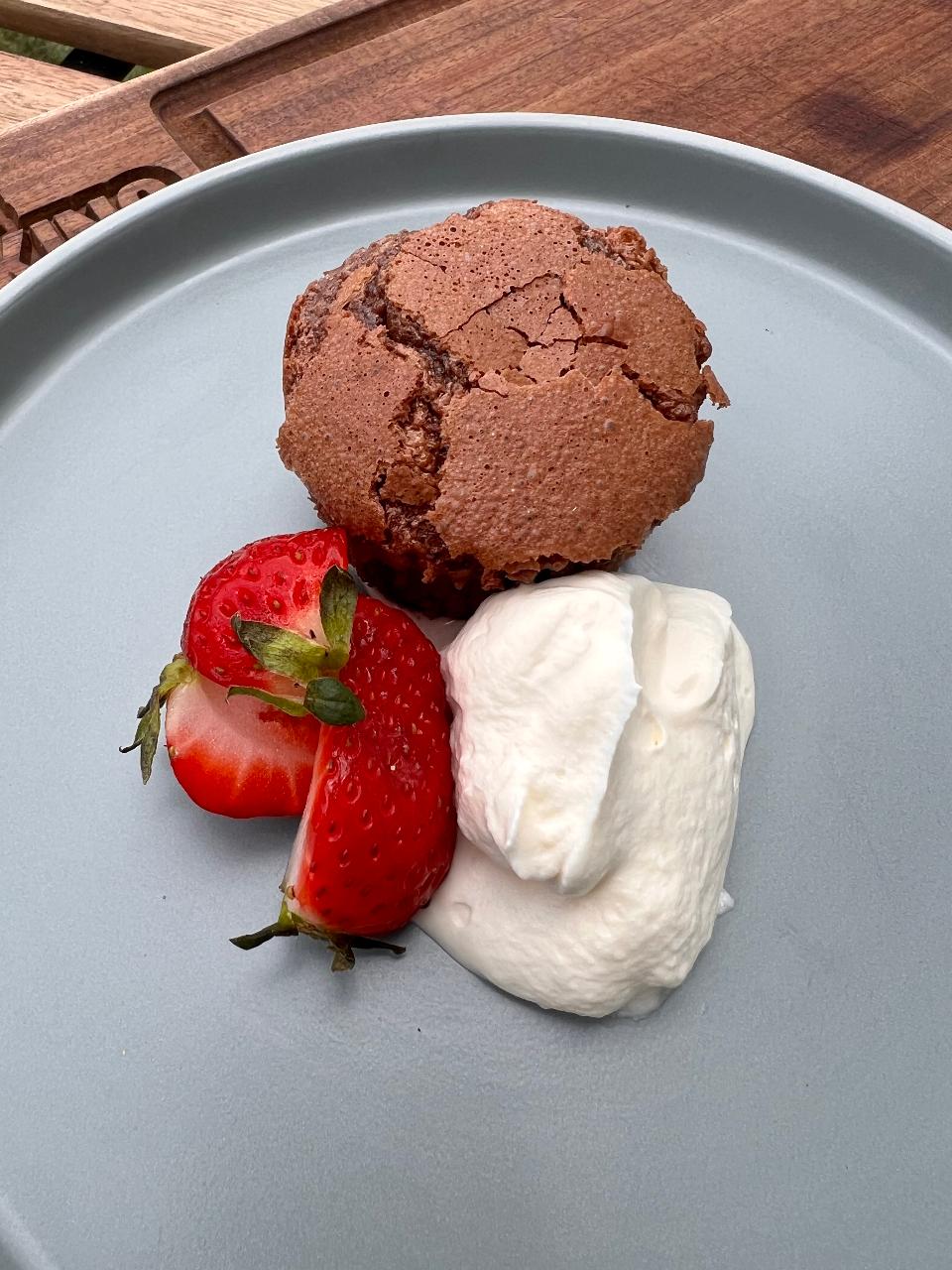 - Chocolate Lava Pudding with Cream and Balsamic Strawberries