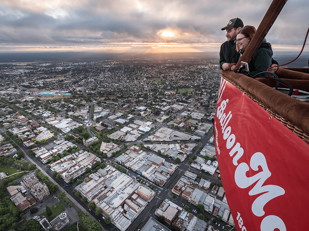 Drift silently across the city’s historic landmarks and witness Bendigo at sunrise as it awakens and people below begin to start their day. After the flight: We celebrate with a champagne breakfast at Quality Hotel Lakeside on Bendigo’s picturesque Lake Weeroona with each of our guests receiving a personalised flight certificate to commemorate the occasion.