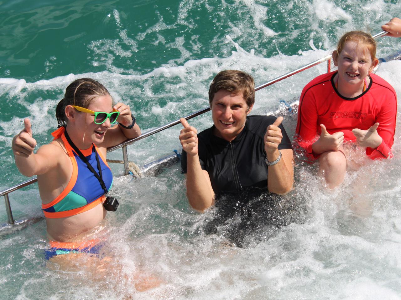 Our purposely built, secure and safe boom-net is a unique way of experiencing the marine life around Hervey Bay. Suitable for ALL AGES it is an excellent way to stay cool and have a heap of fun with friends and family on a warm summers day. The net is a large structure that is lowered from the side of the vessel and easily accessible from the side steps. The boat cruises at a slow leisurely pace, and sometimes dolphins have been known to swim alongside.