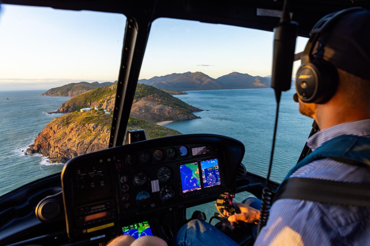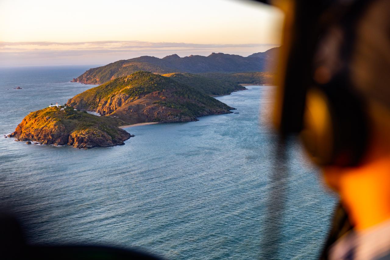 Once we arrive at the cape we’ll let it show off it’s varied coastline with views of Mount Cleveland, hidden sandy beaches and spectacular cliffs that tumble into the ocean. We’ll end our visit with an aerial circuit of the Cape Cleveland Lighthouse – a heritage listed working lighthouse, built in 1879 and utilised during the second world war as an observation post. Keep an eye out for the sea turtles and dugongs that call the area home. We’ll then head home back across the bay to Townsville City, with fantastic views of Castle Hill greeting us on arrival.