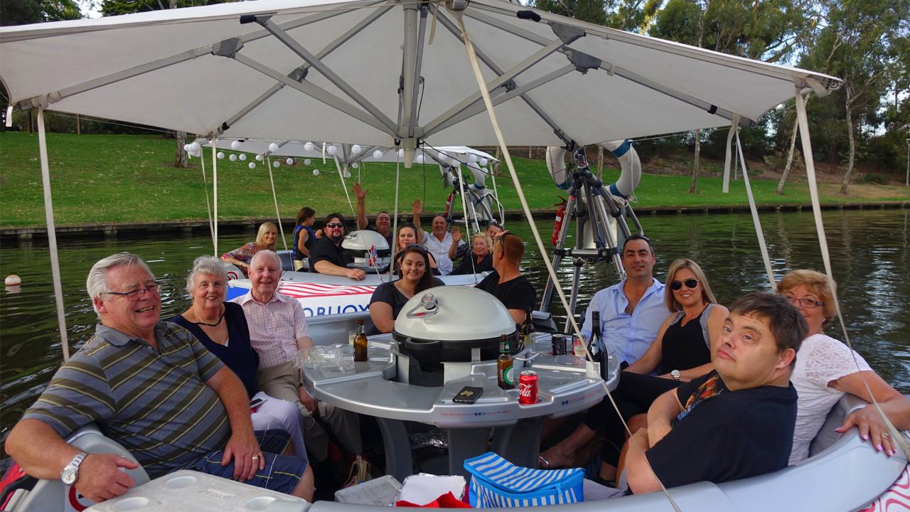BBQ Buoy hire, for max. 10 passengers, 2hrs, bluetooth speakers, esky, ice, cutlery, plates, cups, bbq or table, flexible rescheduling, cancellation and weather policy