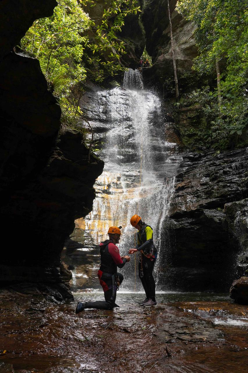 We chose to combine an abseiling experience with the Empress Falls Canyoning day. This was a very special occasion and although we had booked something else, this turned out amazing. The recent rains made our original plan impossible but Paul and James from Eagle Rock Adventures did a great job of pivoting and communicating clearly the whole way.