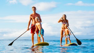 Take the family on a Stand Up Paddle adventure! Join a Group Stand Up Paddle Boarding lesson and one of the kids paddles for free.