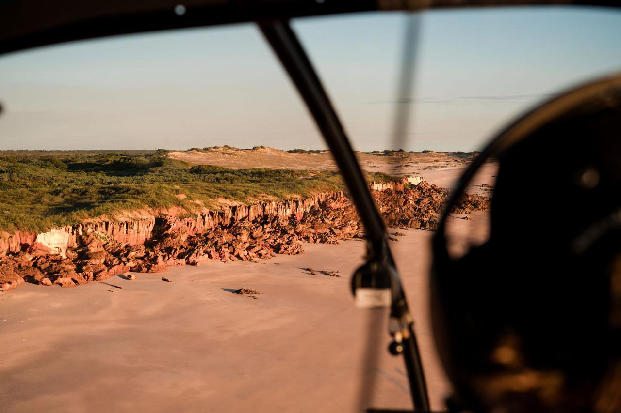 After your time on the beach, your return flight will take you back to Broome close to sunset, with another chance to admire the stunning coastline, including landmarks such as Gantheaume Point and Lighthouse, Reddell Beach, Entrance Point, Simpsons Beach, Roebuck Bay, Town Beach, and Broome Jetty to Dampier Creek