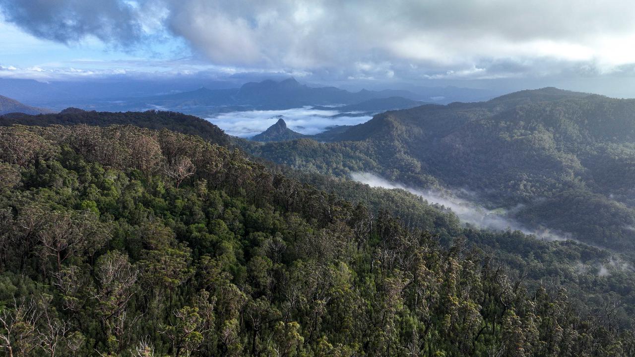 taking in views of Goonengerry National Park and Coopers Creek, hikers