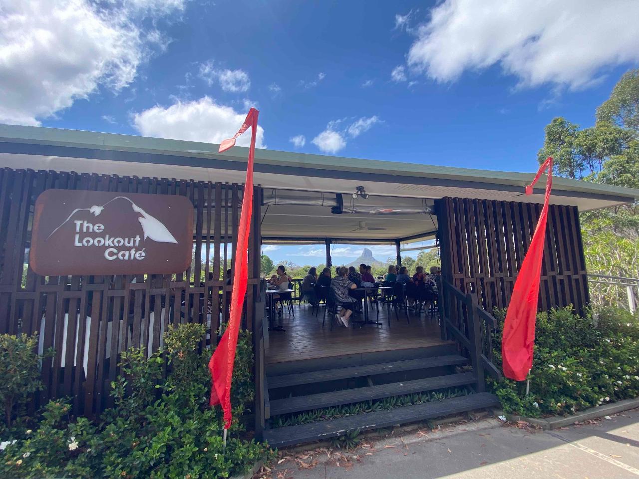 Scenic guided tour through the Glass House Mountains National Park where we take you to the best viewing locations and lookouts,  include a delicious lunch & drink at a lookout cafe and a nature walk with giant trees and wildlife.