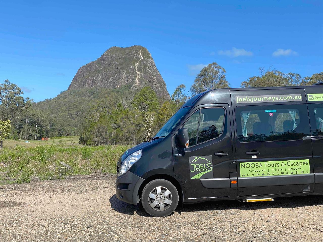 • We then make our way to the biggest of the Glass House Mountains, Mt Beerwah, where we will wind our way on the bus through various other Glass House Mountains to get there with amazing views.