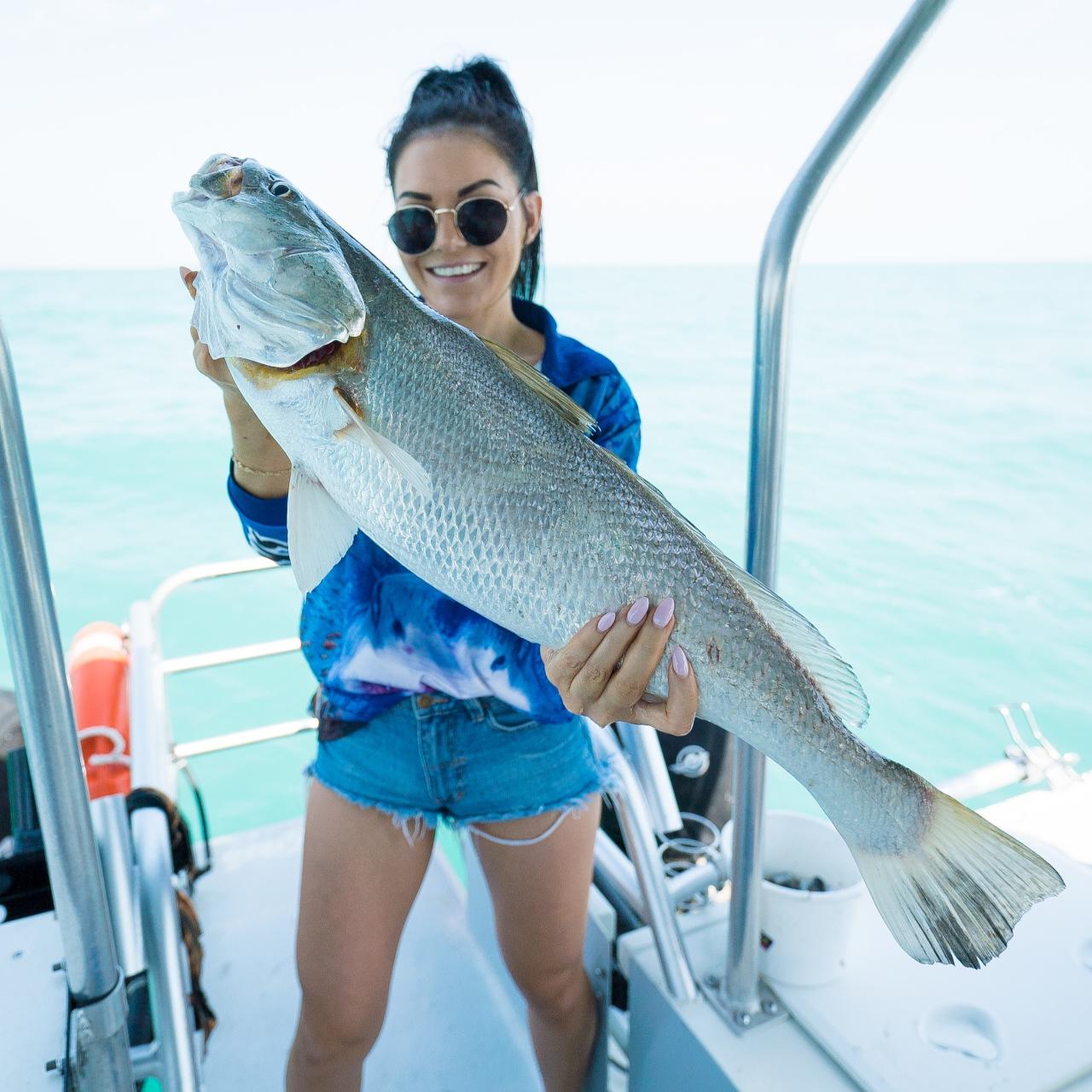 Our Darwin Full Day Charter is our most popular trip, offering the ultimate fishing adventure aboard ‘Knot Stoppin’. We’ll take you to the best (and secret) spots for an action-packed day of reef and pelagic fishing, targeting species like Black Jewfish, Golden Snapper, Coral Trout, Tuskfish, Spanish Mackerel, Queenfish, and Cobia.