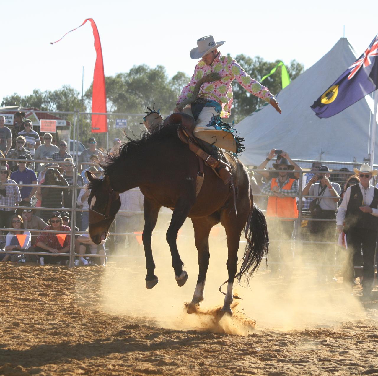 Spend the day immersed in the energy of the rodeo as cowboys and cowgirls compete in thrilling events including bull riding, bronc riding, barrel racing and steer wrestling. The roar of the crowd, the pounding hooves and the skill of the riders create an electrifying atmosphere that captures the true spirit of the bush.