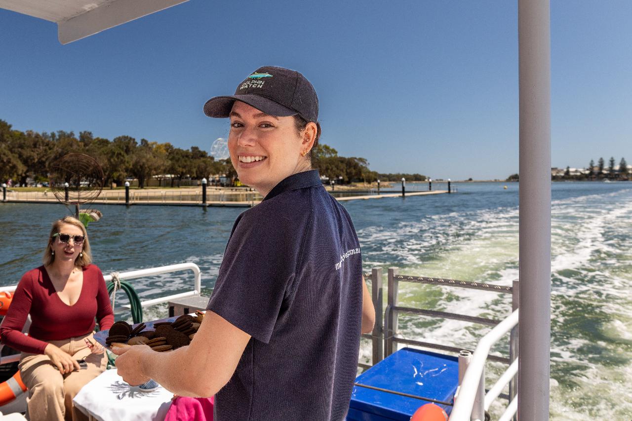 • Cross the Peel Inlet and be on the lookout for Mandurah’s famous Bottlenose dolphins as they surf and play in the wake of the boat.*