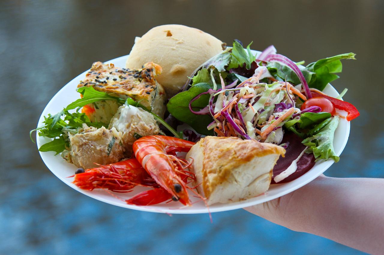 • Lunch is a delicious, chef-prepared Australian buffet, featuring a plentiful selections of local, home cooked produce, finished with divine desserts hand finished on the day.