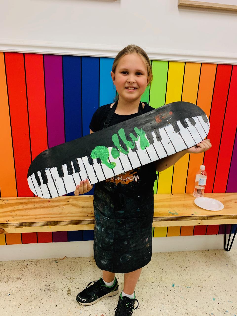 Get ready to roll with creativity at our Skateboard Deck Painting Party! Whether you freestyle your design or use our awesome stencils, you’ll create a one-of-a-kind skateboard deck. Personalize it with your name or unleash your imagination for a totally unique look. Add trucks and wheels (not provided) later to ride your masterpiece, or keep it as a cool piece of art for your room—or even turn it into a shelf!