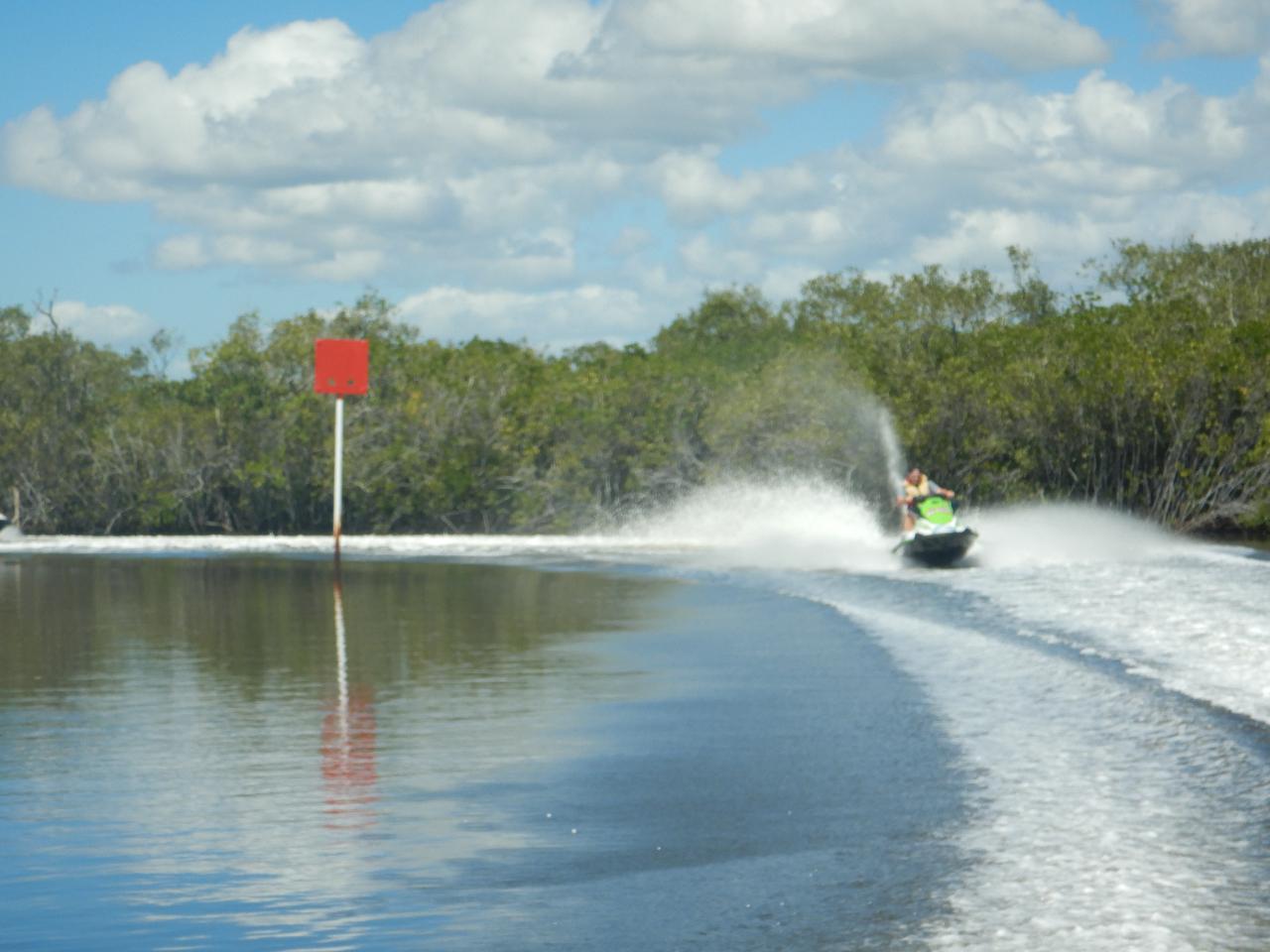 It’s a four hour extravaganza – discovering the magic of Pumicestone Passage under the shadows of the Glasshouse Mountains. We combine the thrill of a jet ski ride with an adventurous eco experience winding through narrow waterways under the volcanic Glasshouse Mountains. They last erupted 25 million years ago – the only explosion you will get on this trip will be the burst of adrenaline during our Lighthouse Reach Hot Lap. We’ll supply drinking water for this four hour trip and there’ll be a 45 minute break in Caloundra – enough time for you to buy a coffee and a snack.