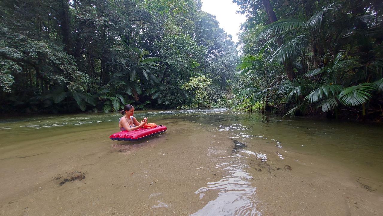 A spectacular Drift on an Inflatable Lilo Sled along a 5klm stretch of waterway in the Worlds Oldest Rainforest