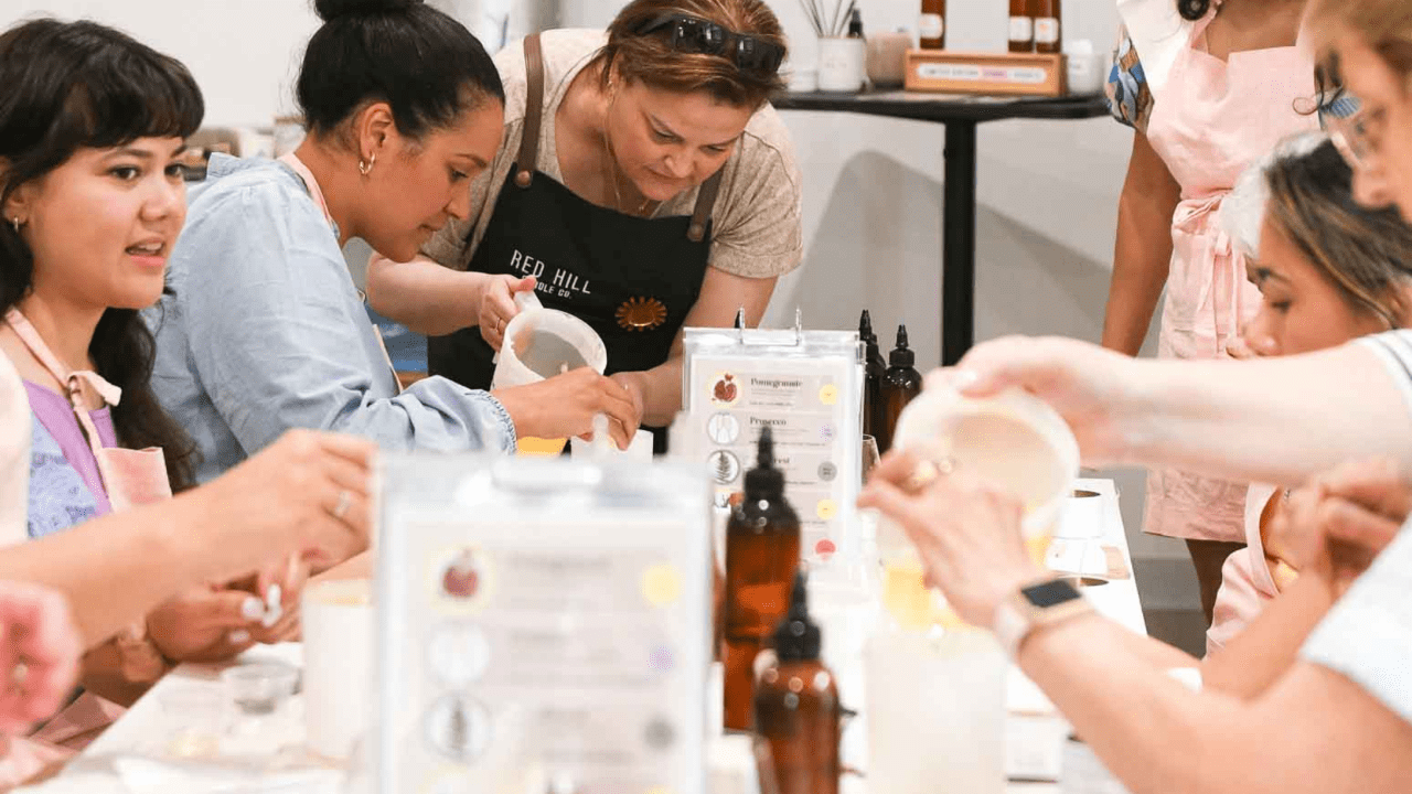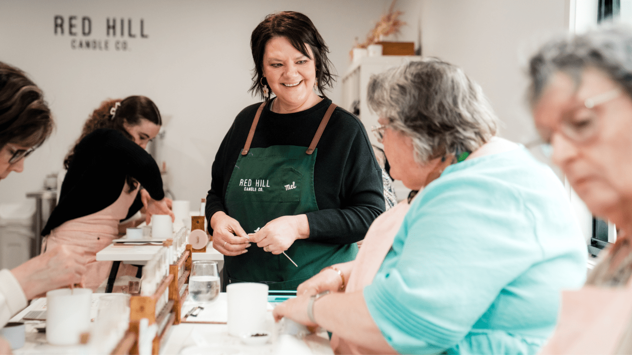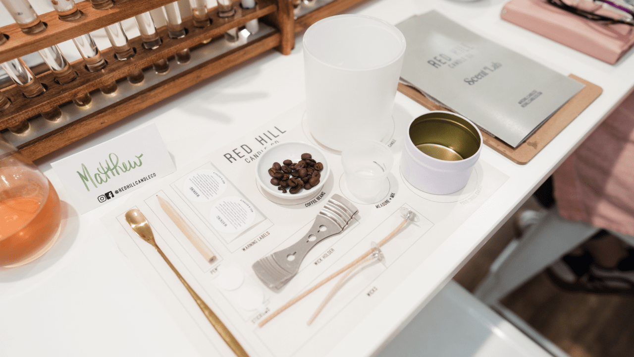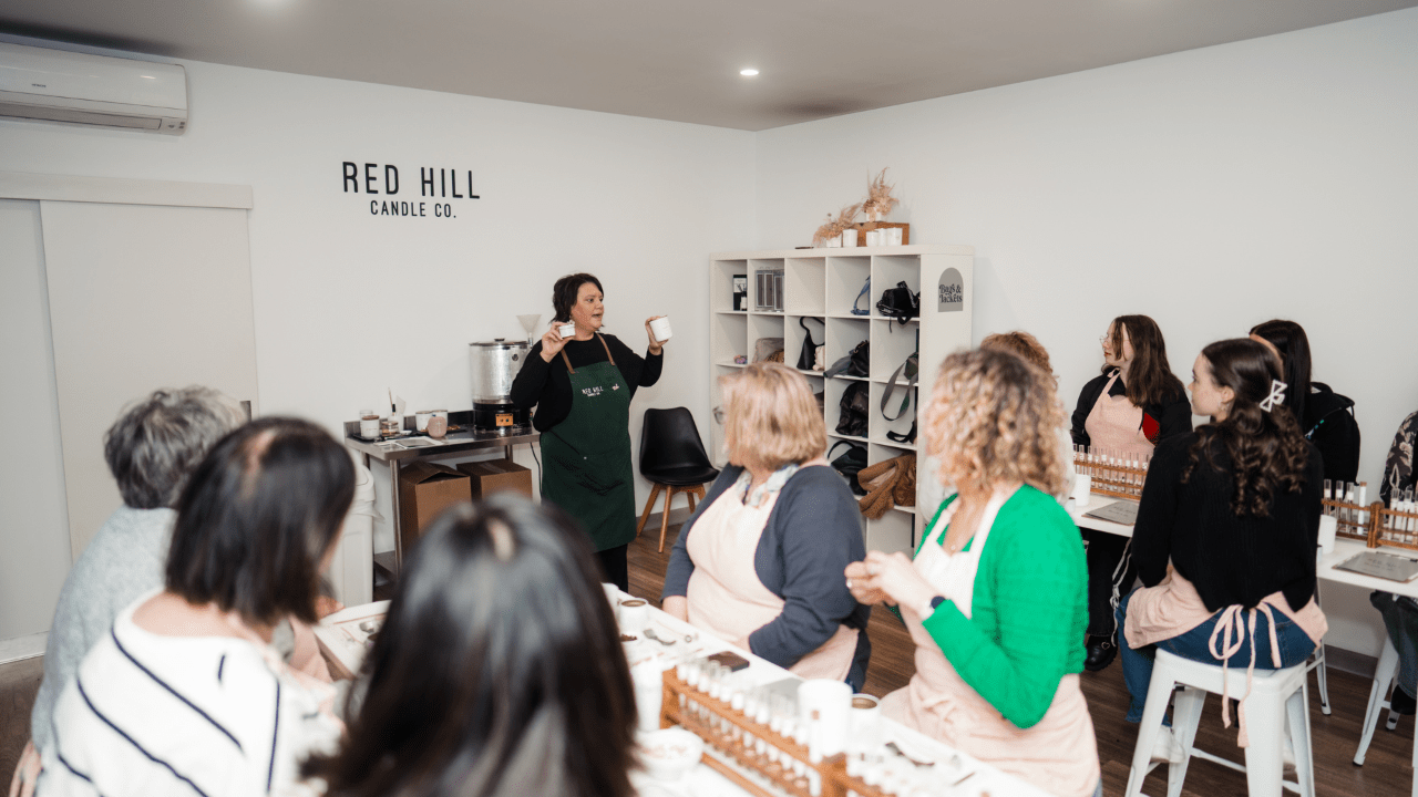 Join  us in the Red Hill Candle Co Scent Lab located in Dromana on the Mornington Peninsula where you will get hands on and learn the basics of candle making. Our 90minute workshop is designed to be a fun memorable day out rather than a heavily detailed training on making candles. At the end of the workshop you will have designed and made two of your very own custom fragranced candles to take home.