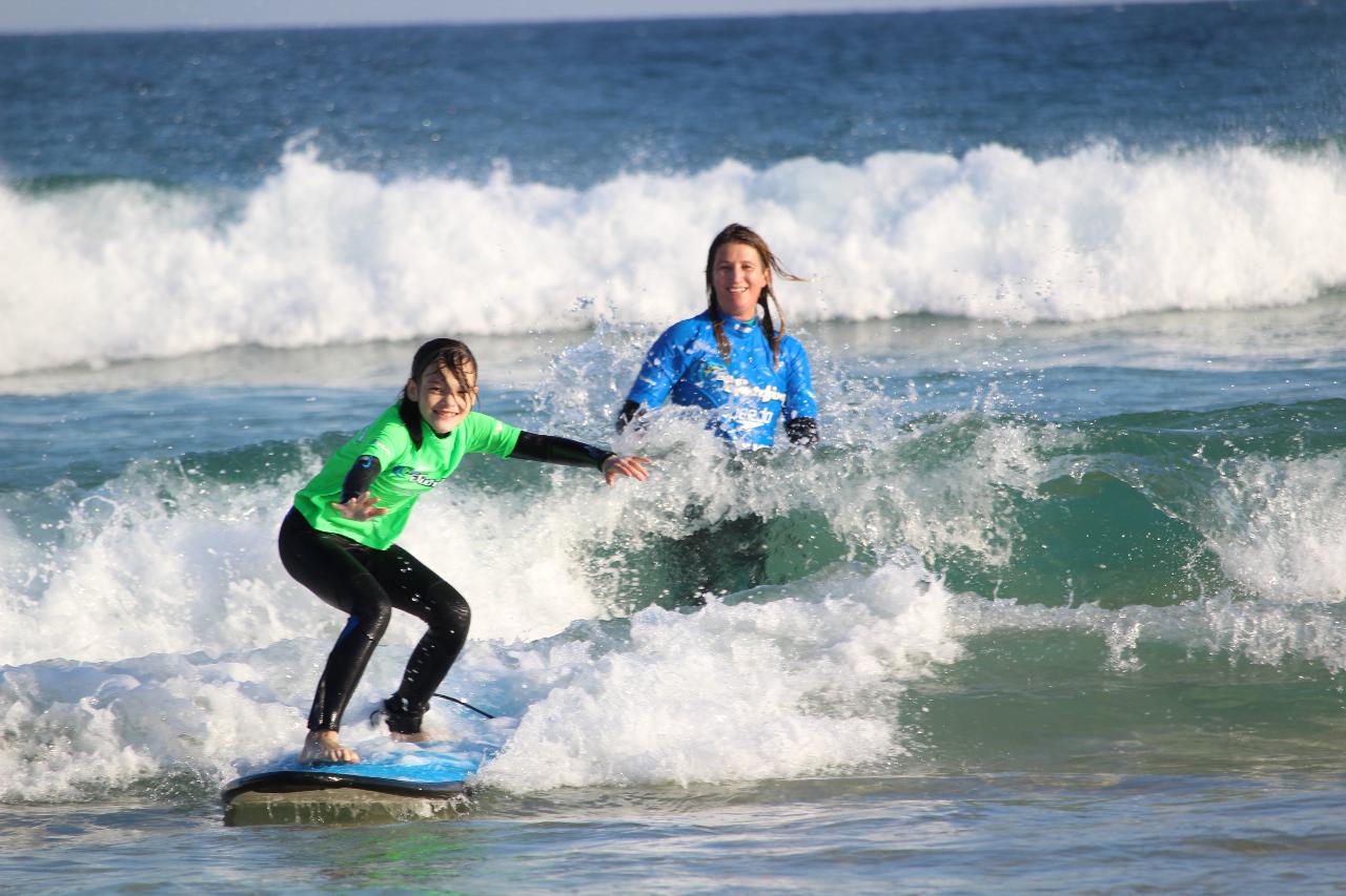 Give the kids a chance to let loose with us safely in the waves this school holidays – improve their surfing and ocean skills. Our hugely popular school holiday programs run daily during the holiday periods. We have a low student/instructor ratio and will group the kids according to ability. All lessons have been designed by a PE/PD/Health teacher and cover the basics from warm-up to paddling, catching waves and standing while also catering to intermediate students (technique refinement and style improvement).