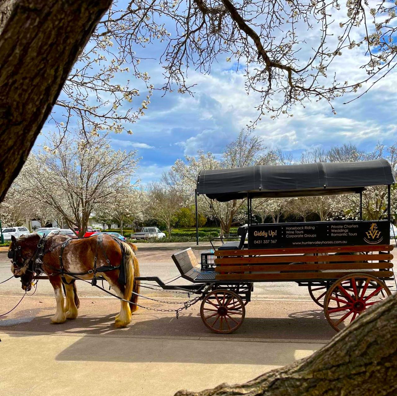 HORSE DRAWN CARRIAGE CANCELLATION POLICY: General Terms: 72+ hours notice: No charge 72 – 48 hours notice: 25% of service fee charged 48 – 24 hours notice: 50% of service fee charged Less than 24 hours notice / same day cancellations / no shows: FULL amount will be charged. Any additional costs incurred by you or your group during the tour will be charged to the credit card provided at the time of booking. Conditions: Arrival time is 30 minutes prior to your scheduled activity. Late arrivals may result in reduced ride time or forfeiture of your booking, as time is required for check-in. All participants must complete the online waiver before arrival. This can be accessed through your confirmation email via the Smart Waiver link under the participant’s name. Any outstanding balance must be paid prior to activity, via cash or card. Please note: The Taste the Valley Tour must have a minimum of 4 people to commence. To find us, This tour departs from just behind the The Wine House Hunter Valley, located at: 426 Mcdonalds Rd, Pokolbin. Follow the driveway past The Wine House building until you see the carriages. If you do not see anyone when you arrive, please wait nearby – we won’t be far away. A text message will be sent to you with your meeting time. Transfers can be arranged for groups of 10 or more, at an additional $25 per person.