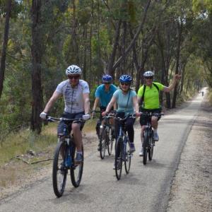 - Day 3: Full breakfast, then cycle via the Murray to Mountains Rail Trail to Myrtleford + farm gates + exclusive winery lunch. Overnight in Myrtleford + dinner. 42kms.