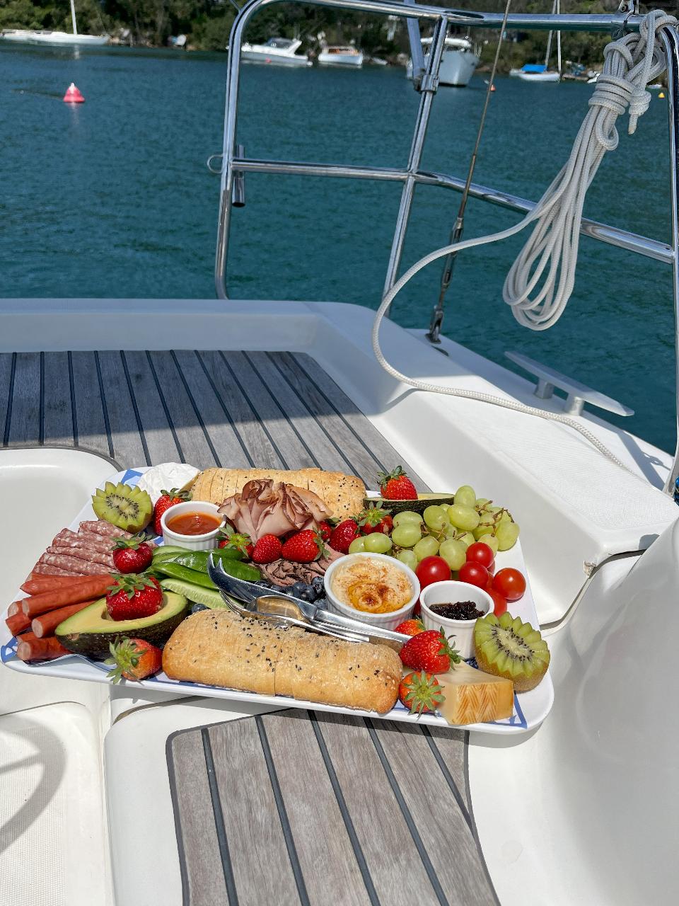 It the morning we made breakfast rolls along with a fruit platter. we did some fishing but the fishes were asleep 🤣 we didn’t want to go home it was one of the most special and beautiful Anniversary celebrations we have had. Next time we want to add a skipper to our package to get some change of scenery.