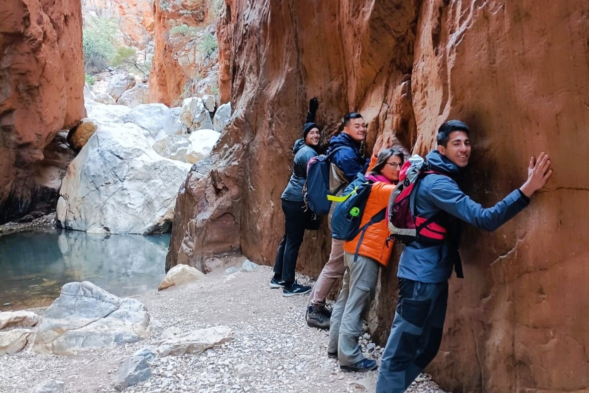 Our West MacDonnell National Park exploration unfolds amidst the towering red walls of Ormiston Gorge. Fuel up with some breakfast while nestled within this awe-inspiring natural wonder, taking a moment to appreciate the immense geological forces that sculpted this landscape. Keep your eyes peeled for native wildlife emerging with the rising sun. Next, we cool off with a refreshing dip in the Ellery Creek Bighole (Udepata in Arrernte). Surrounded by dramatic cliffs and sandy Ellery Creek, this permanent waterhole offers a welcome respite in the arid outback. Continuing our journey, we arrive at Standley Chasm (Angkerle Atwatye). This dramatic 3-meter-wide, 80-meter-high gorge provides a stunning backdrop for our exploration. Our final stop is Simpsons Gap, another remarkable feature of the Tjoritja West MacDonnells. This significant site boasts a permanent waterhole attracting diverse wildlife and holds cultural significance as the intersection of several Aboriginal dreaming trails. With hearts full of wonder and unforgettable memories, we return to Alice Springs, dropping you off at your chosen accommodation. Relive your incredible four-day exploration and connect with the new friends you’ve made it along the way.