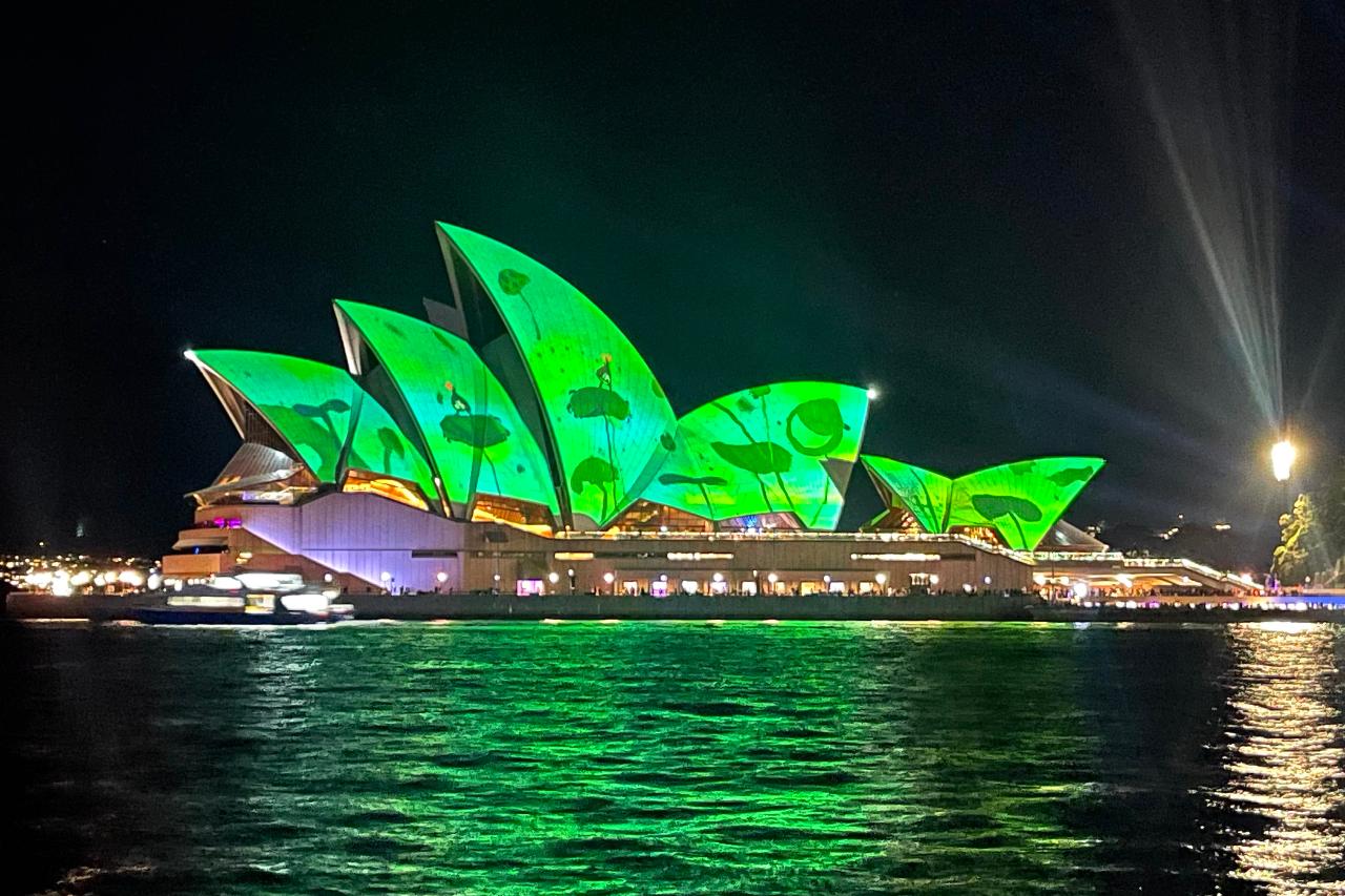 This cruise takes place on board Fleetwing II – a luxury motor catamaran that can be enjoyed in all weather conditions with four on board entertaining areas and upper and lower deck areas for viewing the Vivid lights. With maximum passenger numbers of 45-50, enjoy plenty of photo opportunities amongst the views of the Sydney Opera House, Harbour Bridge, Luna Park and other lit up locations, as you cruise on the water with amazing views and hospitality. Roaming canapes and a complimentary beverage are provided, and there is a licensed bar on board so you can enjoy further drinks on the harbour.